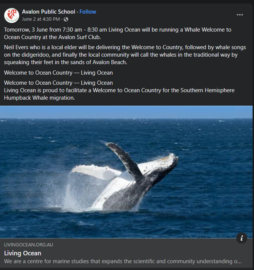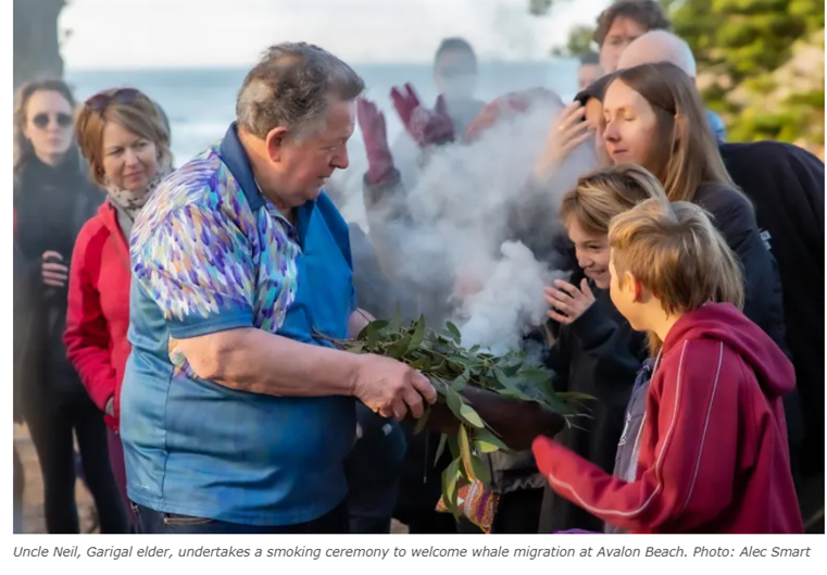 A Whale Welcome to Ocean Country event, which included a traditional smoking ceremony by Garigal elder Uncle Neil.
