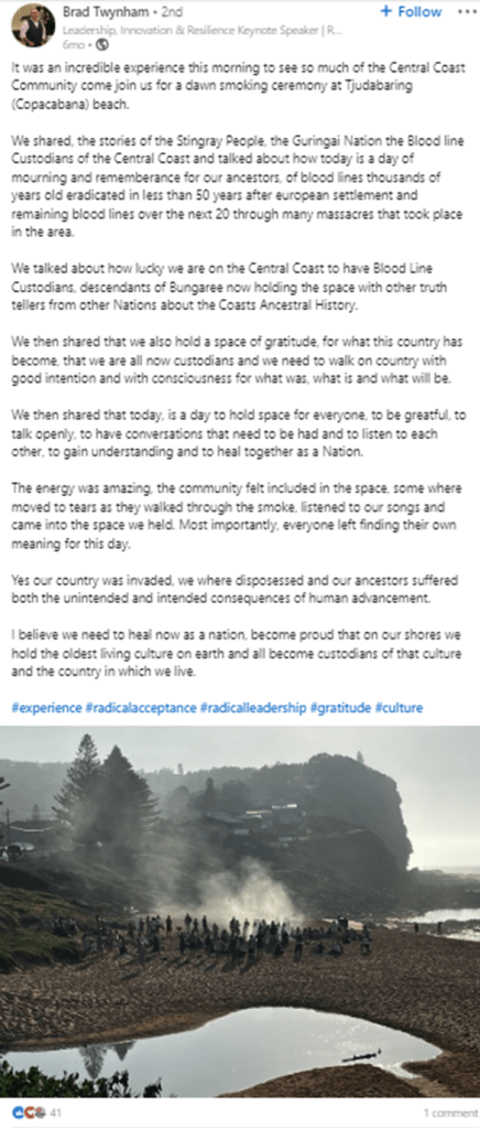Paul Craig is a regular contributor to local Central Coast Facebook pages, claiming to be a Traditional Owner, a Guringai man, and a descendant of Bungaree.