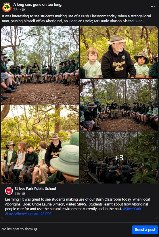 Laurie Bimson makes the same claim as his cousin Neil Evers; that his parents hid his Aboriginality as a child in order to keep him from being stolen. Laurie distinguishes his story from that of Evers, by adding the confusing wrinkle that both his Father, an Uncle and an Aunty all told him he had … Continue reading Laurie Bimson