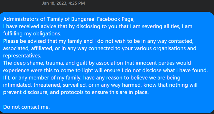 I’m not sure it does seem that way Rebecca, and you know this to be false. I met with your family members twice over Zoom, conducted due diligence when a number of red flags appeared, and the resulting investigation is what is now publicly available on Bungaree.org