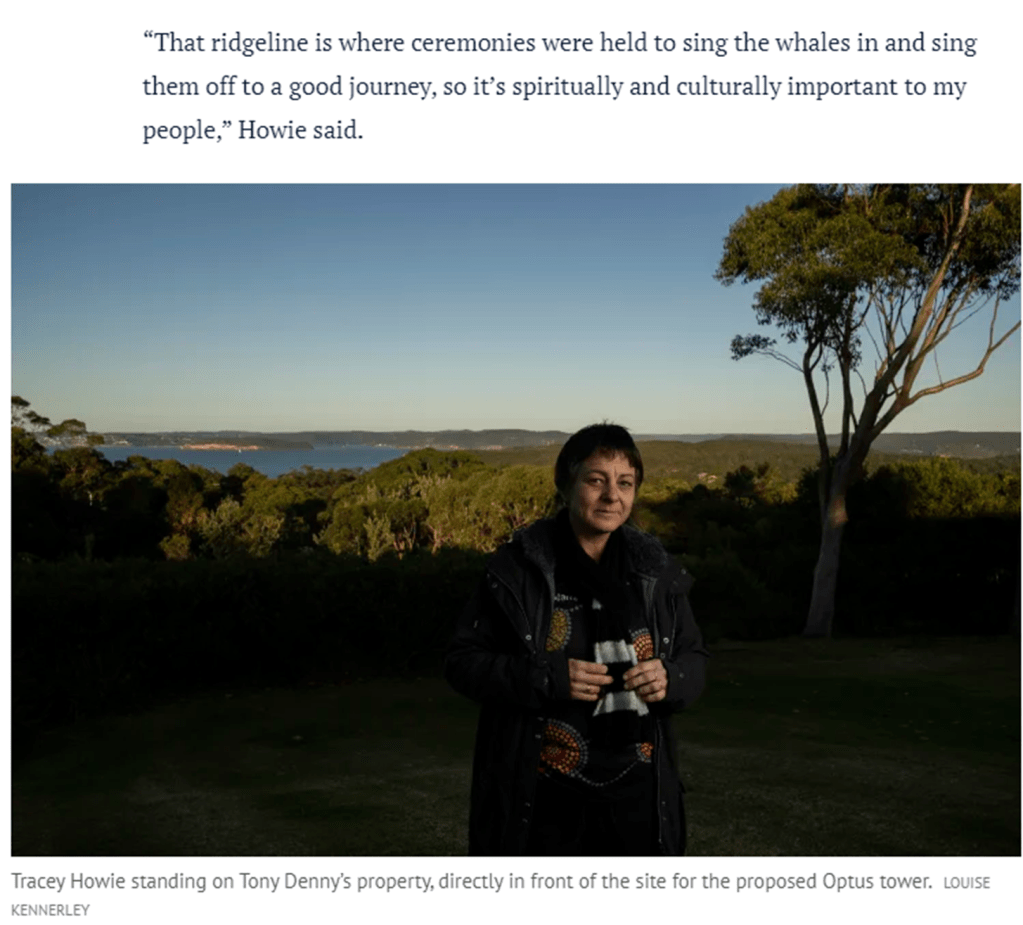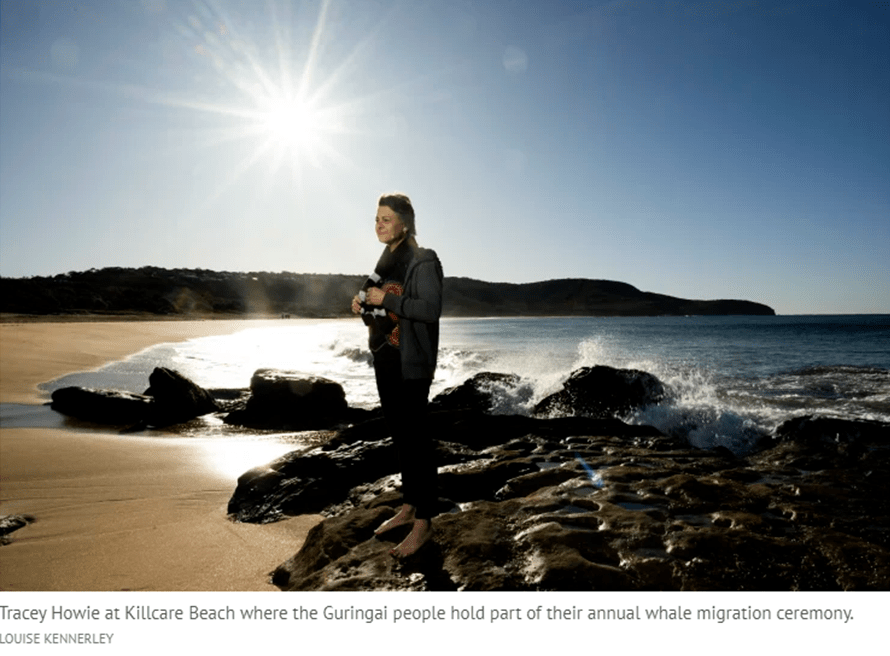 “Howie said her people would first spot the passage of the whales from the ridge, and then perform daily ceremonies, moving to the ocean in the east and the bay in the west, and up the ridge into what is now the Bouddi National Park.