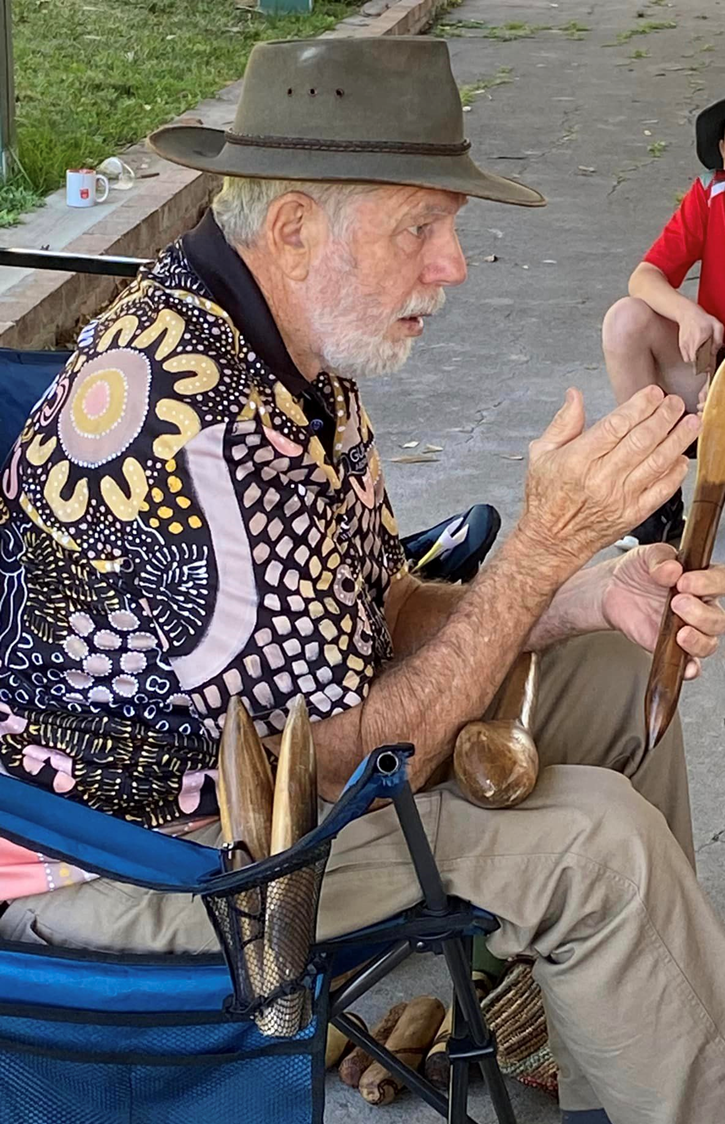 Local Garigal man and Aboriginal Support Group — Manly, Warringah and Pittwater (ASGMWP) Chair Uncle Neil Evers (image below), who recently hosted a public forum on the Voice, conducted the Welcome to Country and Smoking Ceremony. He was supported by Matt James on didgeridoo and the event was moderated by former ABC senior journalist Anne Maria Nicholson.