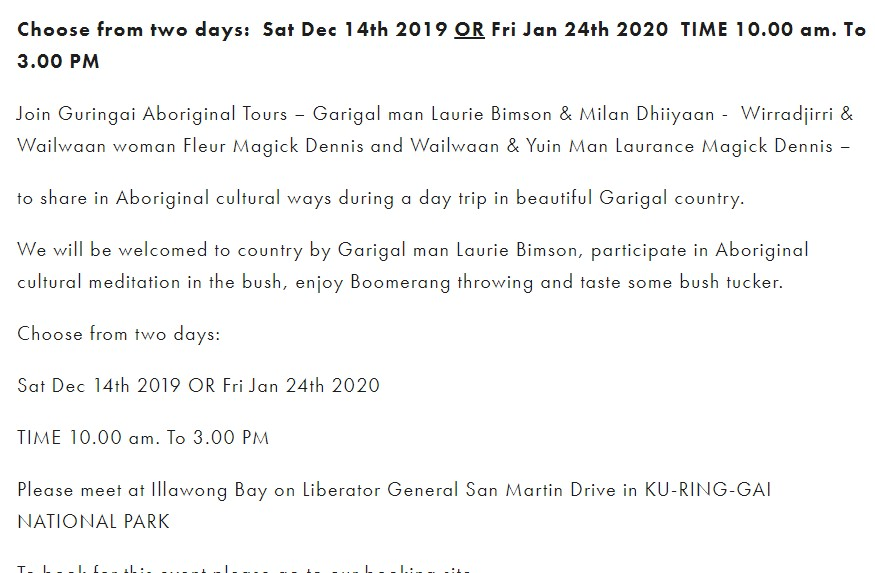 These men either took up with a fraudulent operation, or were not educated enough in either Culture to see what is readily apparent; Mr Whitfield and his niece are not Aboriginal, and had only started their operation on the Central Coast a handful of years prior.