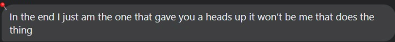 “In the end I just am the one that gave you a heads up it won’t be me that does the thing.”