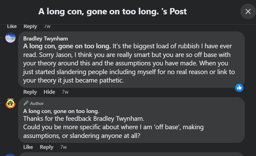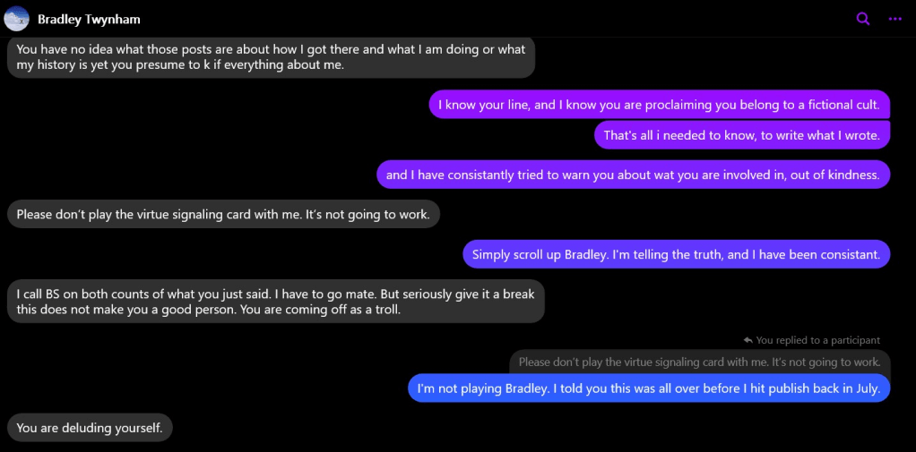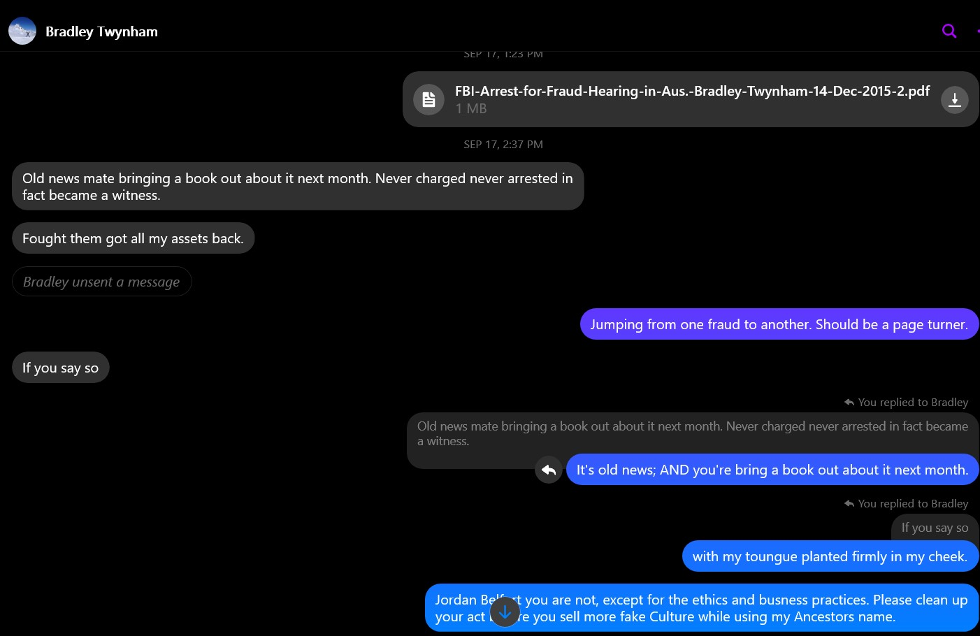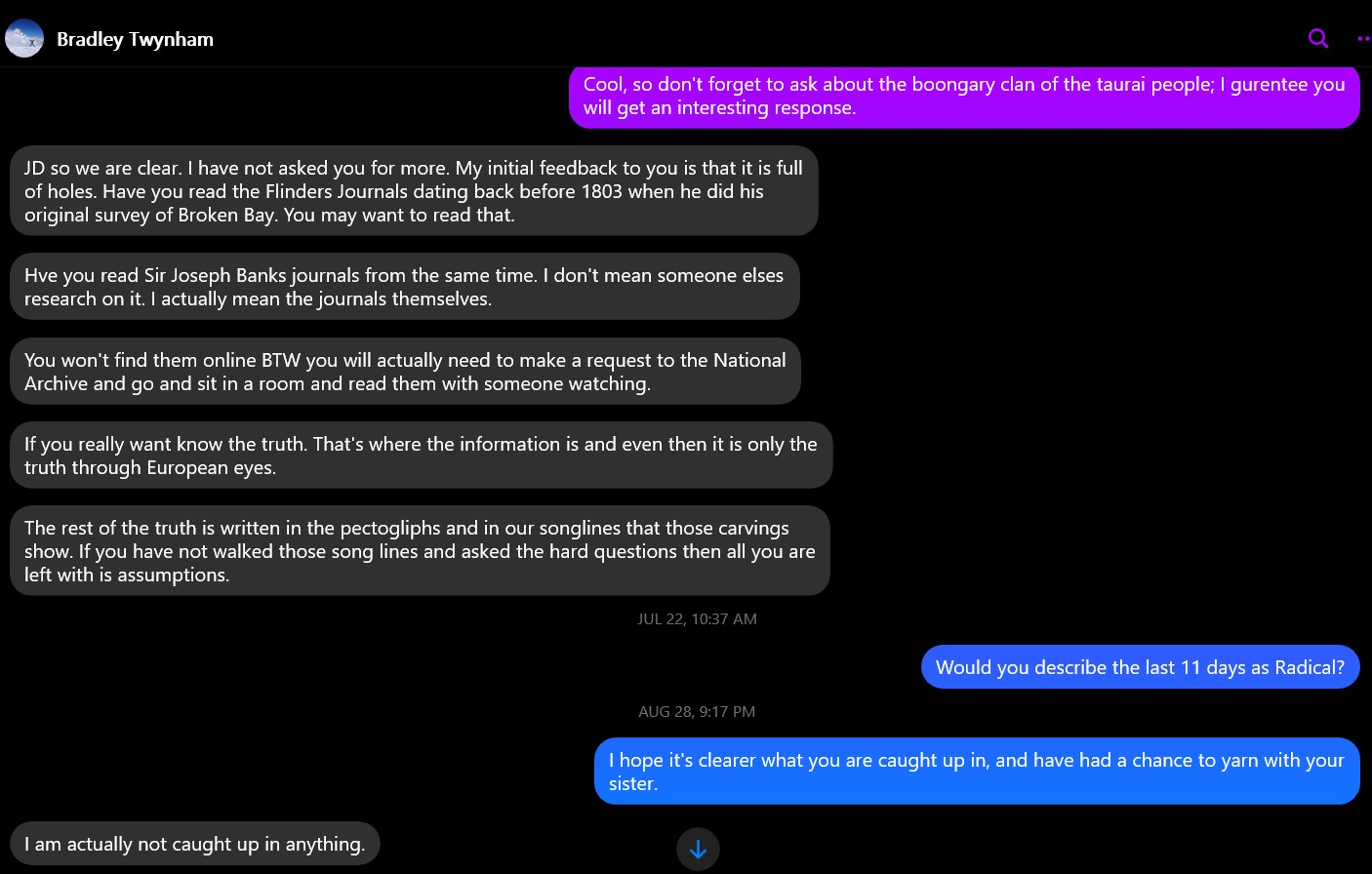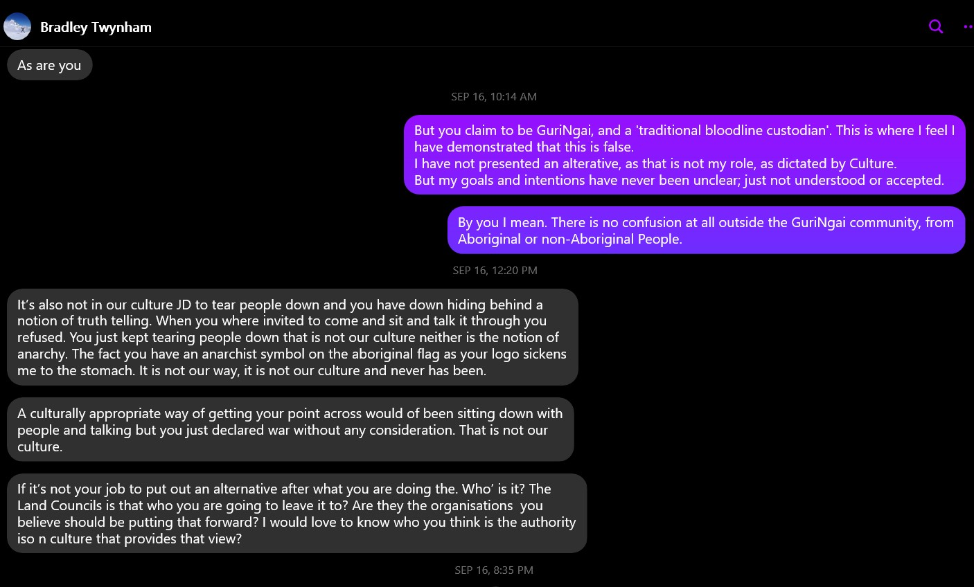 12. Bradley Twynham knows full well why I will not meet with him in person – the multiple credible threats to my personal safety by those involved in the GuriNgai farce, as documented withing A Long Con, Gone on Too Long.