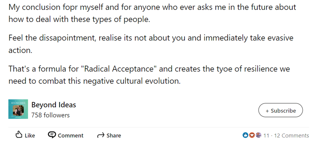 Propaganda appearing in real time, from a supposed expert in resiliency, managing change, and leadership.