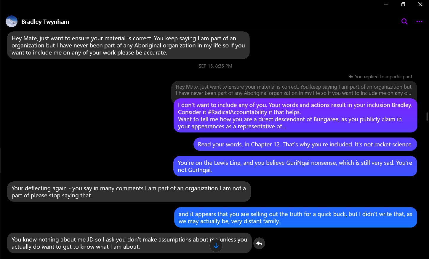 11. I would be fascinated to hear any admission of the many mistakes made by Bradley Twynham and the GuriNgai – I have not. Any evidence of accountability would be welcome, none has been found.