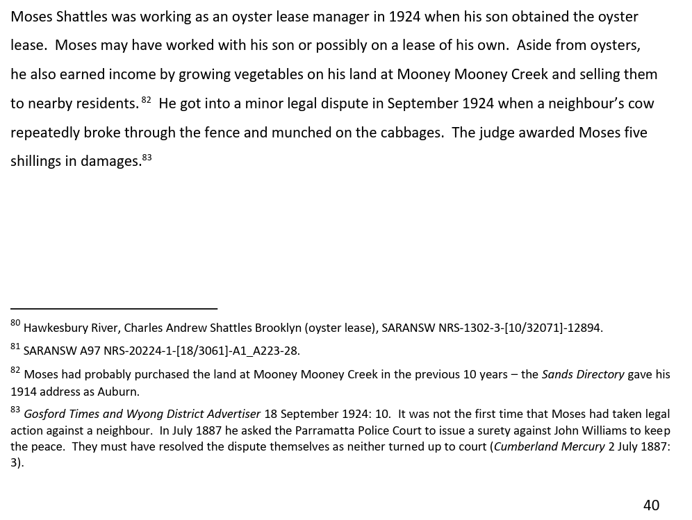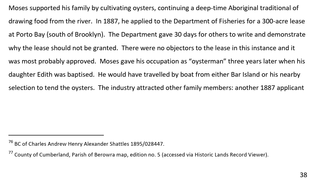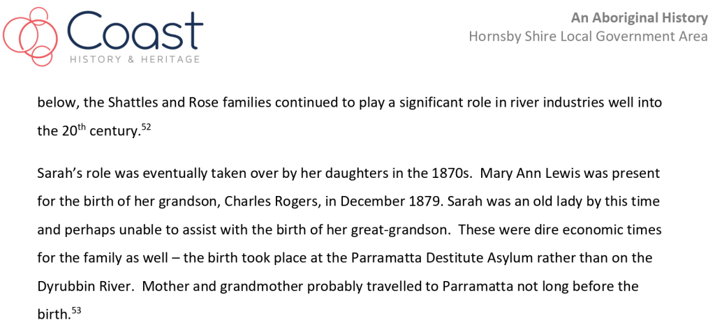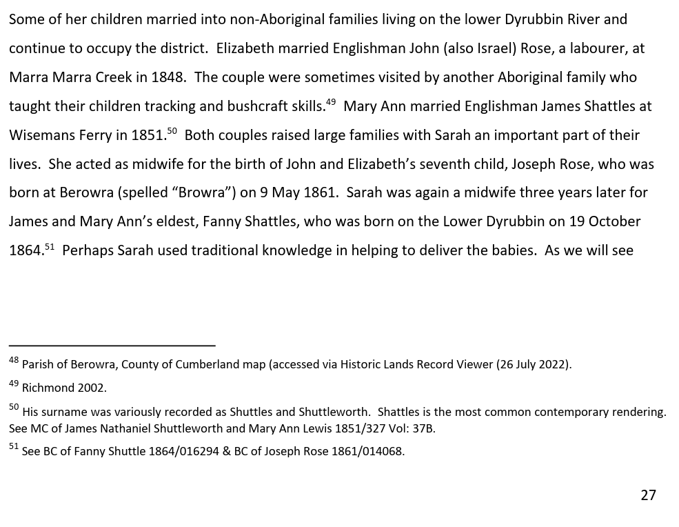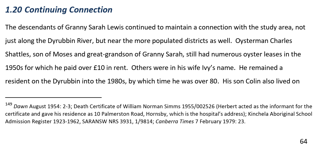 The report that featured the following egregious error/egregious lie from Dr Michael Bennett: “In my opinion, based on the available documentary evidence and you oral testimony, you have a clear connection to the Gosford Area going back to Chalotte Ashby (nee Smith), her mother Sophy and grandparent Boongaree and Matora.“
