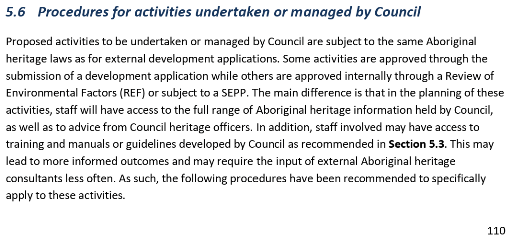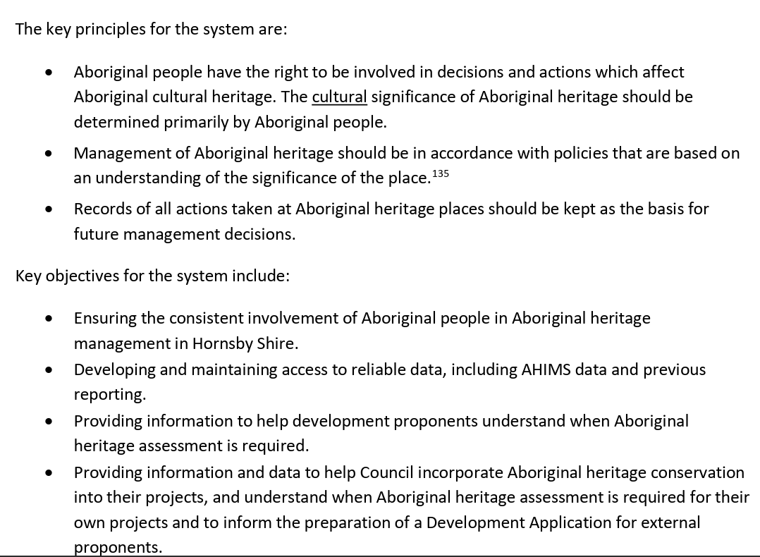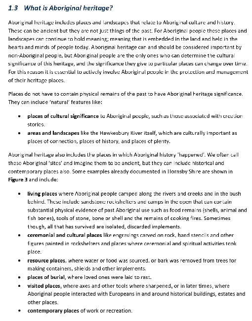 Page 6 of the resulting study describes how the study was conducted “in order to update data on known Aboriginal sites and places, broaden the recognition of Aboriginal cultural heritage values (sic), and identify processes for ongoing consultation and collaboration with local Aboriginal people.”