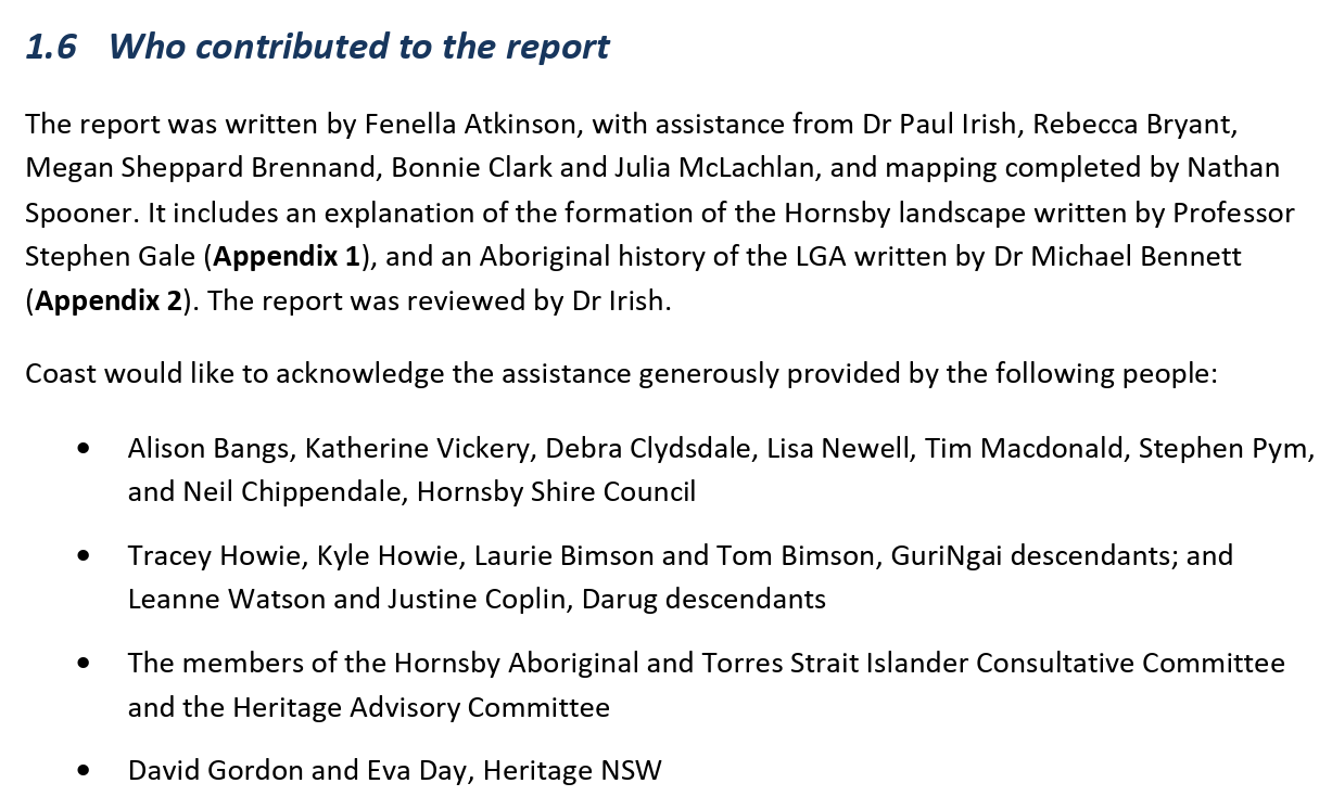 Of course its the same Dr Michael Bennett who would go on to provide what is seen by Government Officials as the Aboriginal history of the Hornsby LGA.