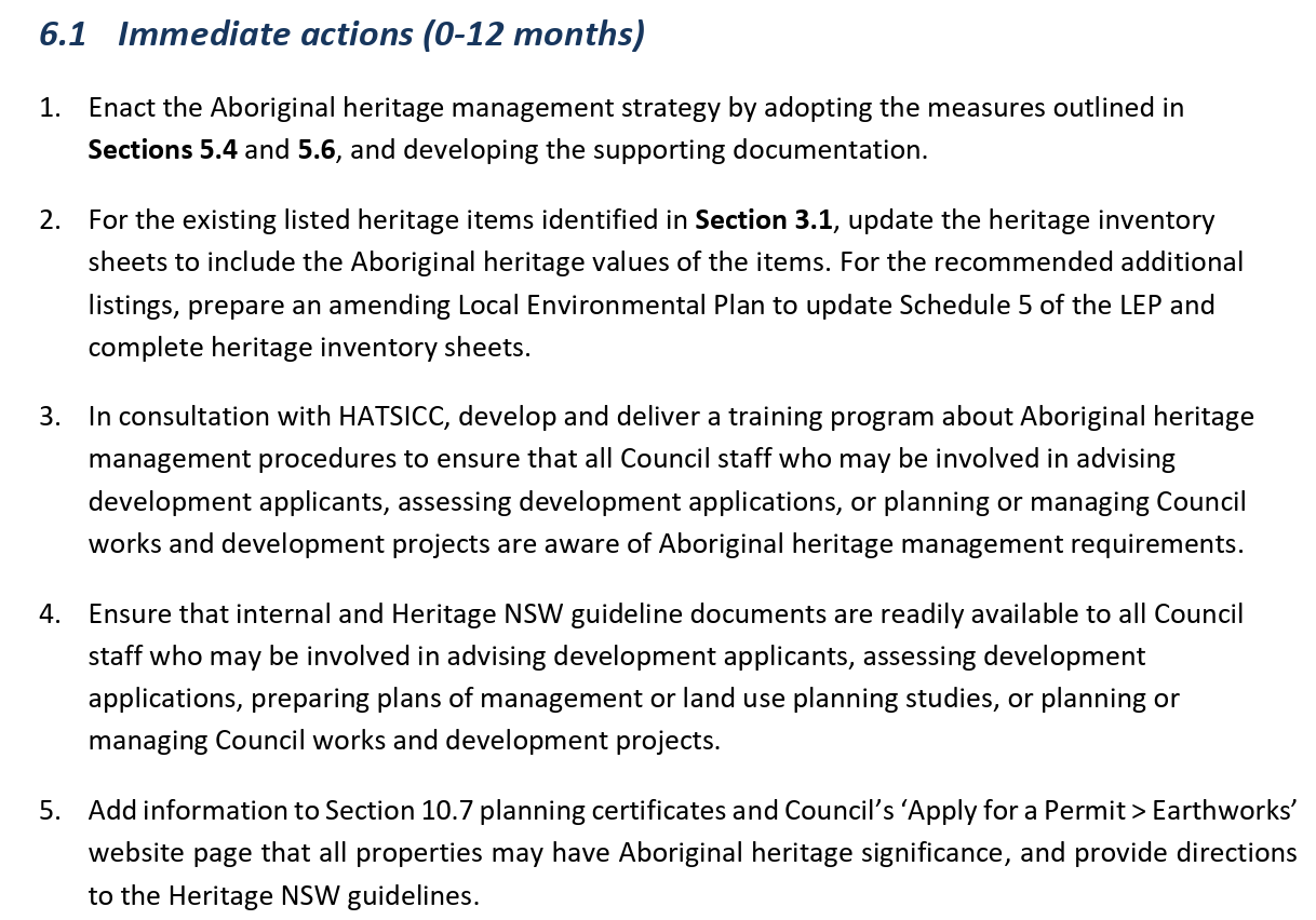 A new Aboriginal Heritage Study will update data on Aboriginal sites and places, provide an improved understanding of the current condition of Aboriginal sites, recognise Aboriginal cultural values beyond site-based values and identify mechanisms for ongoing consultation and collaboration with local Aboriginal people about their local heritage.