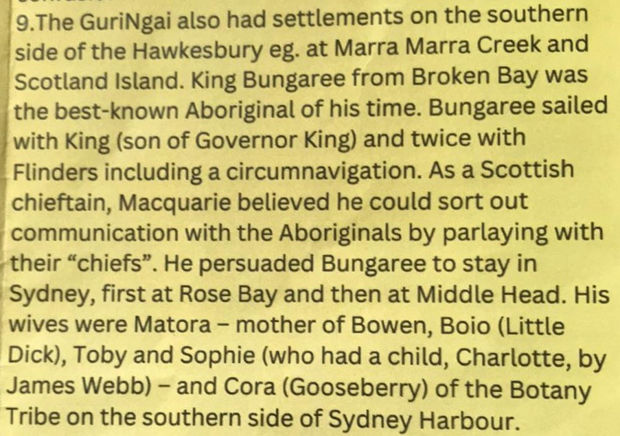 Then in their description of Bungaree’s immediate family, they forget to mention Sarah Lewis, the apical Ancestor of the actual Marramarra Clan.