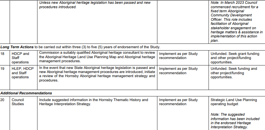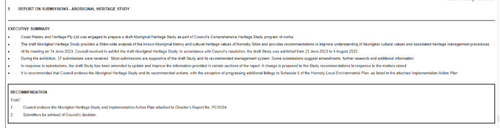 Should Hornsby Shire Council endorse the bogus Aboriginal Heritage Study and Implementation Action Plan attached to Director’s Report No. PC10/24; one of the optional recommendations is this: