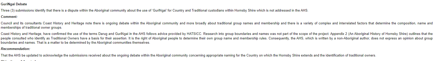 This GuriNgai polluted research is intended to be the definitive history of the region, and will form the basis of future decision making – solidifying the very issues that just cost Hornsby Shire Council $36 million dollars.