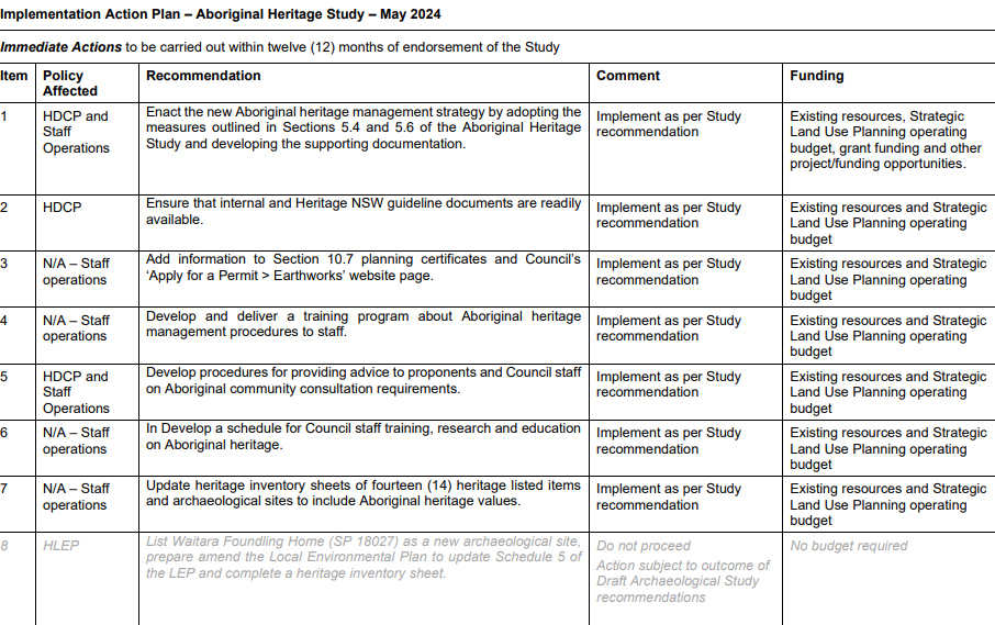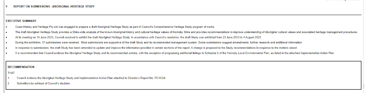 Should Hornsby Shire Council endorse the bogus Aboriginal Heritage Study and Implementation Action Plan attached to Director’s Report No. PC10/24; one of the optional recommendations is this: