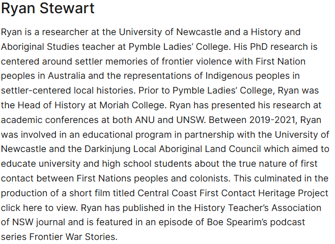 Ryan Stewart’s 2025 doctoral thesis, Writing the History of Contact on the Central Coast of New South Wales, represents a deeply compromised intervention into Aboriginal historiography. Framed as a reconciliatory gesture grounded in scholarly rigor, the thesis in fact functions as a vehicle for the epistemic laundering of discredited settler narratives. As well as reproducing past errors of citation or interpretation, it also re-legitimises known fabrications and embeds them into the institutional archive under the authority of a PhD credential.